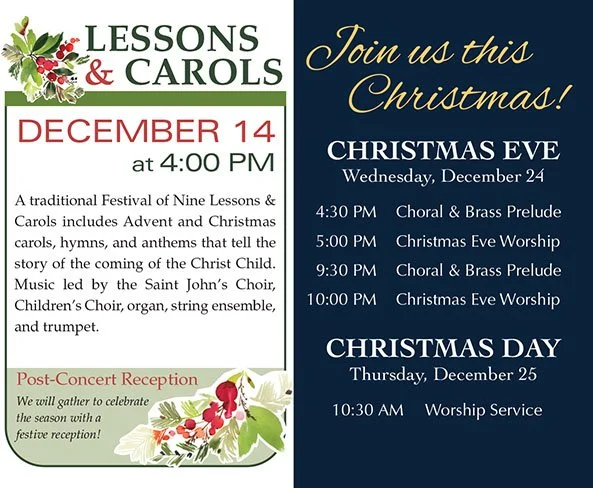 All are welcome at Saint John’s regardless of race, culture, ethnicity, age, gender expression or identity, sexual orientation, physical or mental ability, socioeconomic position, immigration path, or faith journey.